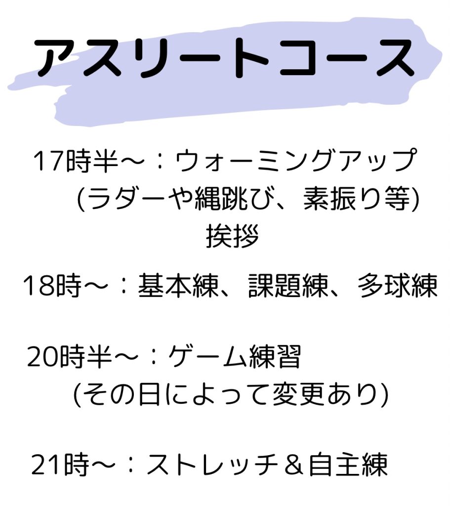 | 週2コース (月8回) | 17ː30~21ː00 | 12000円 |
